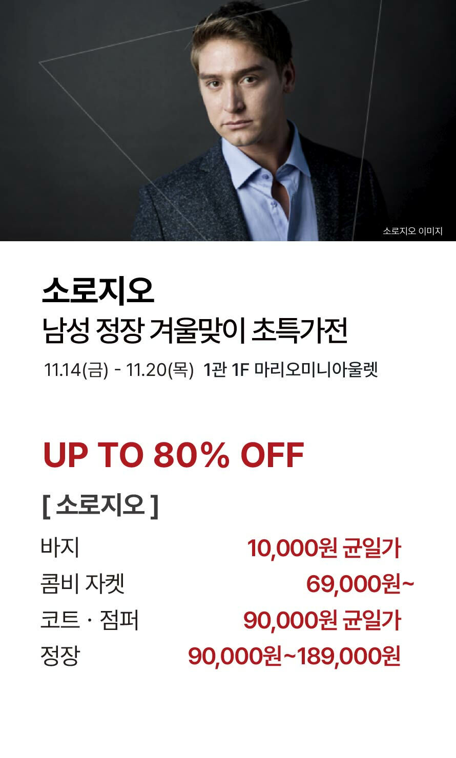 [소로지오] 남성 정장 겨울맞이 초특가전