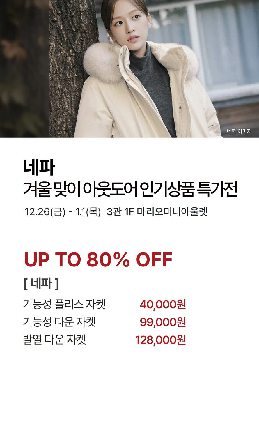[네파] 겨울맞이 아웃도어 인기상품 특가전