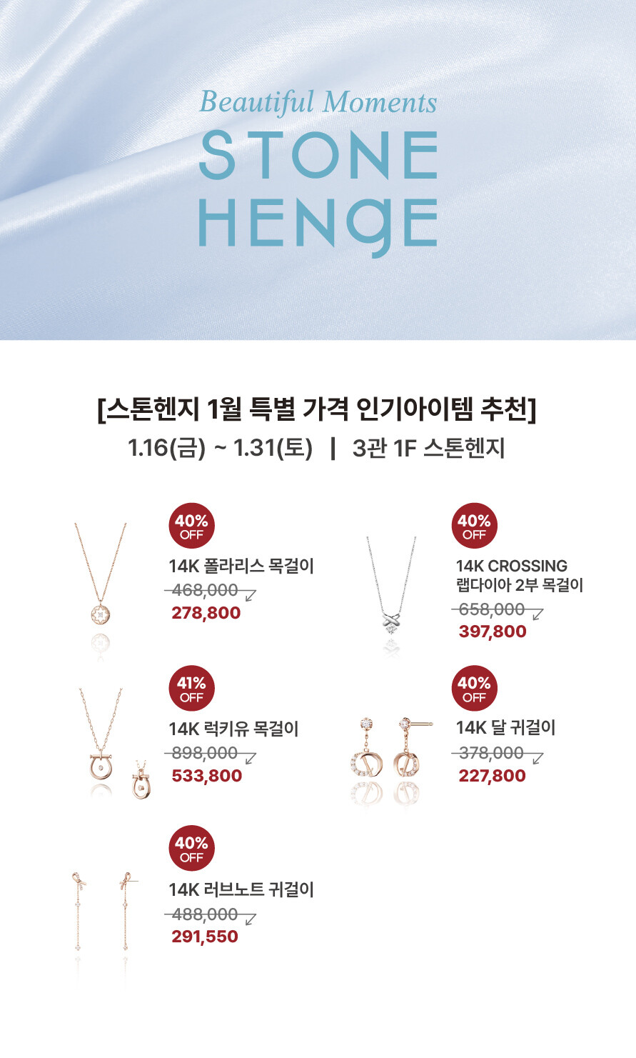 [스톤헨지] 1월 특별가격 인기아이템 추천 기간 : 2026-01-16 ~ 2026-01-31 위치 : 3관 1F 본매장 ▲ [럭셔리부띠끄] 1월 특별가격 인기아이템 추천 ▼ [탠디] 제화 균일가 특집전